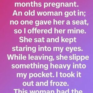 I was riding the bus, seven months pregnant and feeling both excited and tired. When an older woman boarded, I offered her my seat without a second…